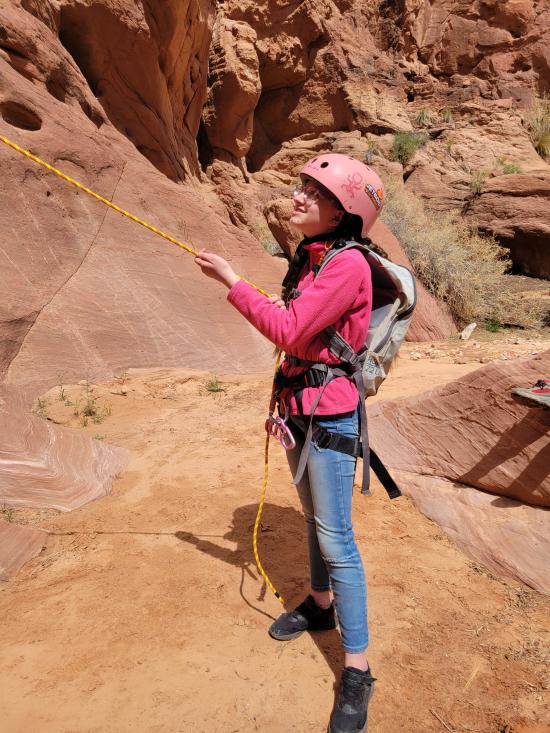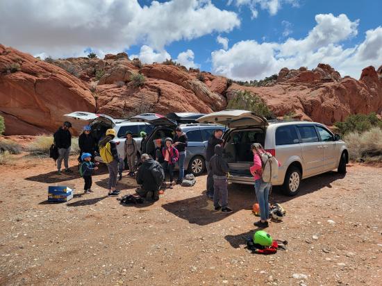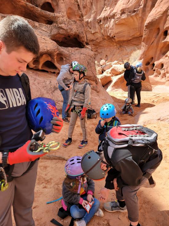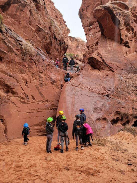 On Thursday of fall break, we packed lunches and gear and headed south to Catstair Canyon. The Pattersons had never done canyoneering before but wanted to give it a try, so we thought that would be a good beginner canyon to take them through. Also, because of the snow in the forecast, we decided not to do our original plan of Diana's Throne Canyon because we are afraid it would be too long. Catstair Canyon ended up being just the right amount of difficulty for the group.