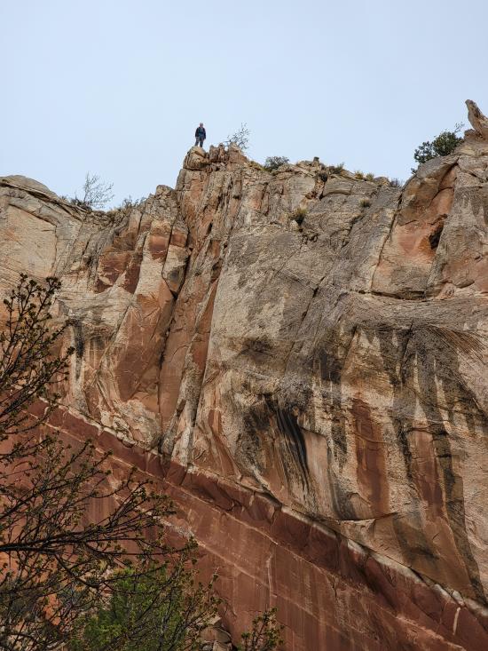 At the bottom of the canyon is some rock art on the south canyon wall. When we were there, there was an ammo box with printouts of the rock art to help visitors identify the different art panels. These petroglyphs and pictographs are often visited by hikers entering from the trailhead to the east.