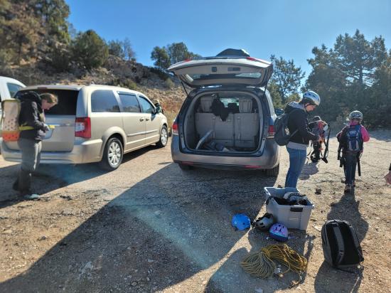 When we got back to the cars, we opened the shell to put in our canyoneering gear, and half of our gear and camping equipment was missing. There was a major panic moment for a minute or two until we realized that the missing gear was in the back seat of Ondy's car. It turns out that Anthony was driving home from his trip to Bull Valley Gorge, and they saw our cars parked at the trailhead. They pulled over to and played a prank on us by switching all our gear around. Nice one!