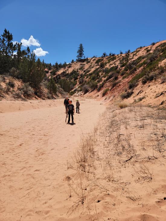 Here, the canyon opens up to sandy wash walking for about a thousand feet before you reach the final section of narrows.