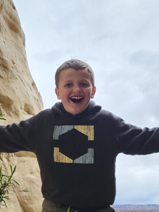 On the hike back, I gave Trey a shoulder ride. As I was walking across a steep ledge with drop offs on both sides, Caleb played peekaboo with Trey, and Trey tried to turn around on my shoulders to look at Caleb. He did it very abruptly, twisting my head in the process and almost making me fall.