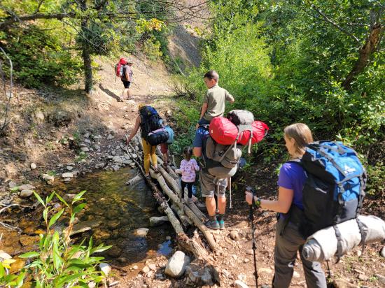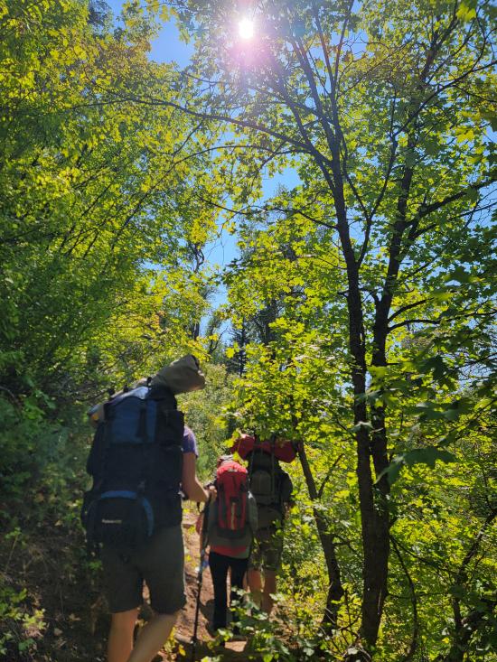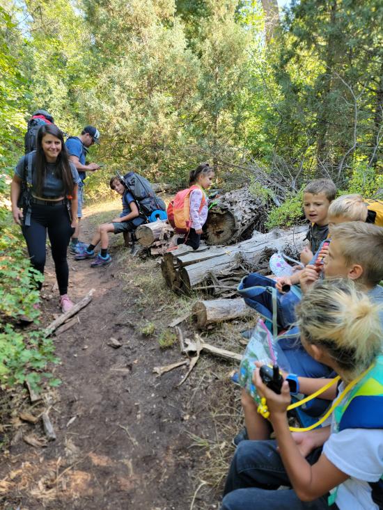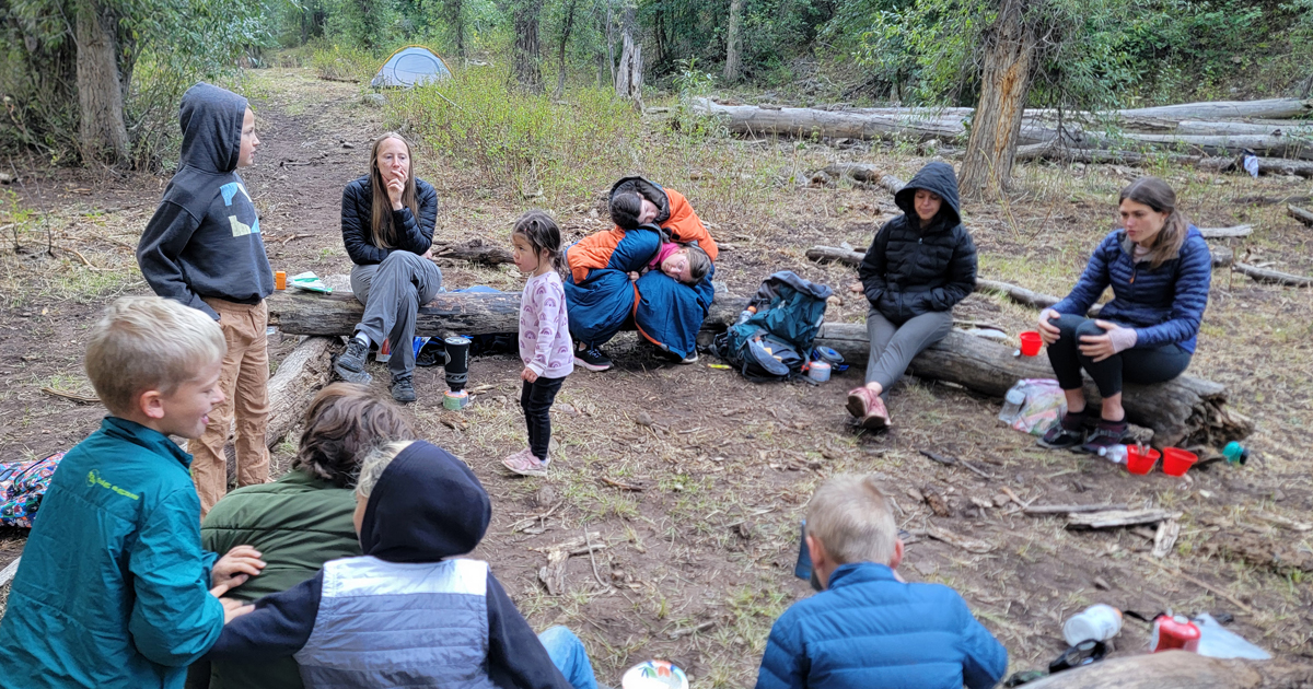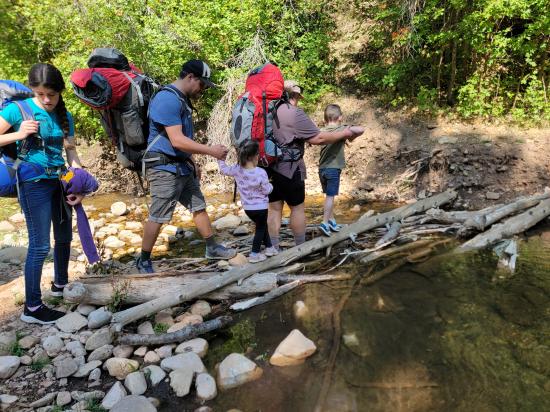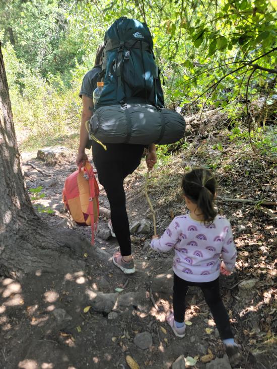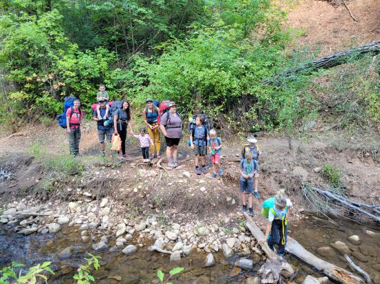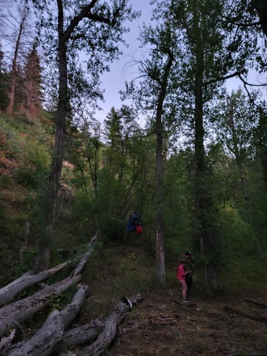 The trail follows the creek the whole way, so there aren’t any major elevation gains. We hiked up slowly, focusing on having a good time rather than moving quickly.Near the top, we dropped our packs and played some games. It was a decent camping spot but not ideal. Anthony, Tara, and I hiked a little further to scout, and a few of the kids tagged along. We found a better camp about 10 minutes up the trail, so we gathered everything and relocated.