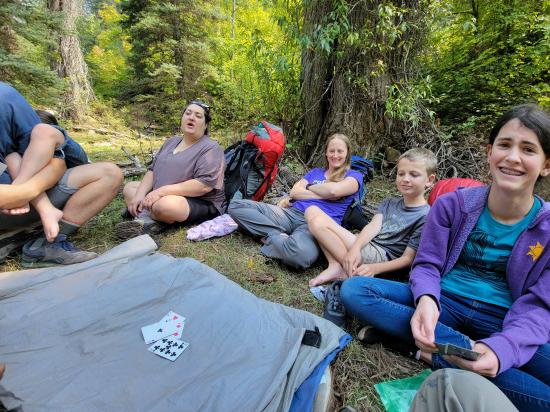 We played at camp, talked, and hung out some more. We played a round of Canadian Salad. Then we fixed lunch and packed up camp.