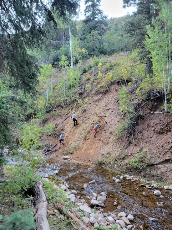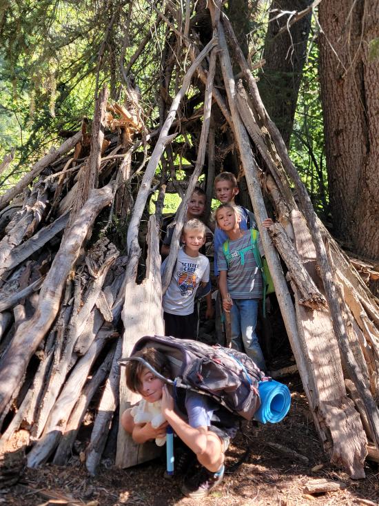 The younger kids played on the bank of the creek, climbing up a steep hillside by grabbing roots and swinging around. They also built several stick teepees. Savannah and Madi hung out with the adults. We talked about Ondy’s life changes and other fun topics.