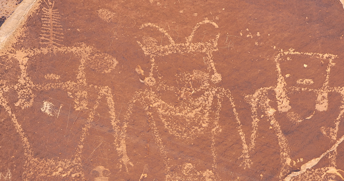 The Daisy Chain Panel is a Fremont rock-art site located in the San Rafael Swell region of central Utah, along Lower Cedar Mountain Road (which branches from the Green River Cutoff Road between Green River and Castle Dale). The site is part of a cluster of rock-art panels in the area, which also includes the nearby Silent Sentinel Panel, 45 Degree Rock, and Railroad Rock. At the Daisy Chain Panel, you’ll find several notable figures carved into a large boulder, most prominently three anthropomorphic figures who appear to be holding hands (hence the name “Daisy Chain”), alongside other smaller anthropomorphic and zoomorphic (animal-shaped) images.