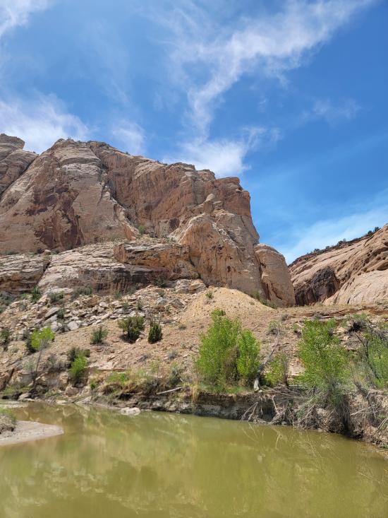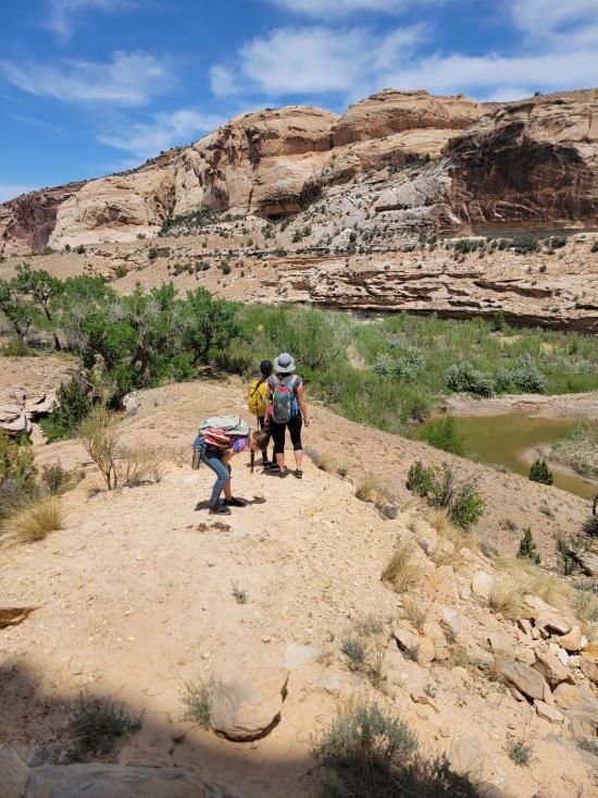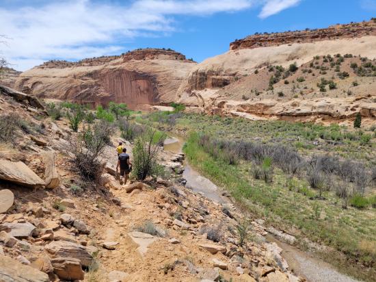 The Little Grand Canyon in Utah is a scenic canyon carved by the San Rafael River in the San Rafael Swell, offering expansive canyon-rim views, isolated river bottoms, and a mix of hiking or backpacking experiences. While there are shorter hikes and overlooks, the full hiking route through the canyon is about 14 miles (one way) and requires multiple river crossings, solid wilderness preparation, and optional primitive backcountry camping. The western trailhead is located at Fuller bottom, and the eastern trailhead is located near the Swinging Bridge on Buckhorn Draw Road. This hiking trail follows the San Rafael River past multiple rock art sites and provides access to several spur hikes including the Sorrel Mule Mine, Salt Wash, Virgin Spring Canyon, and Cane Wash.