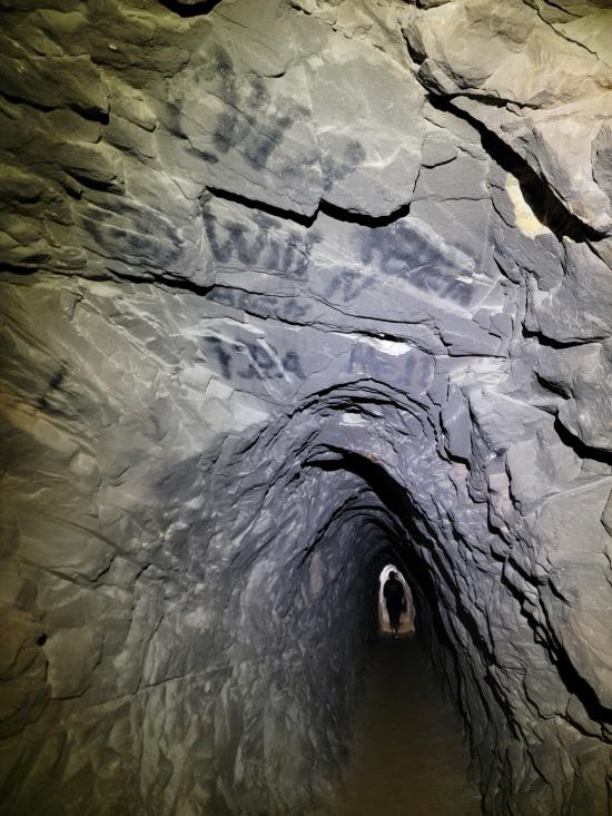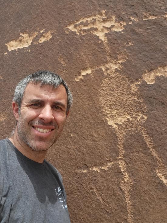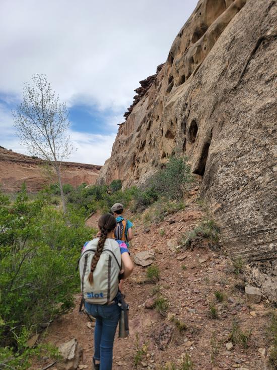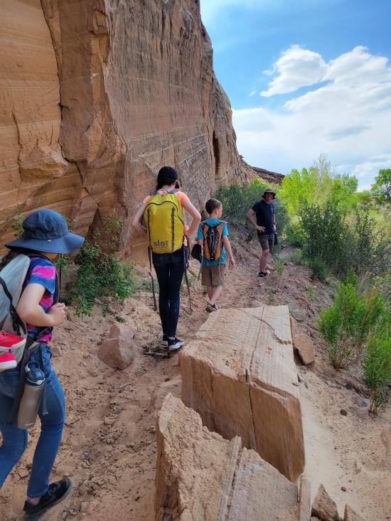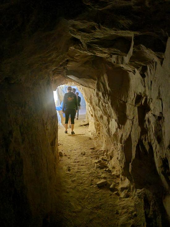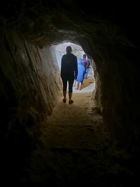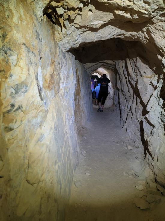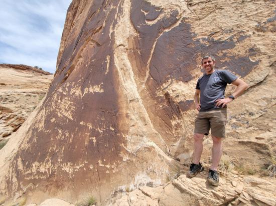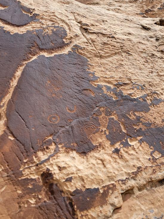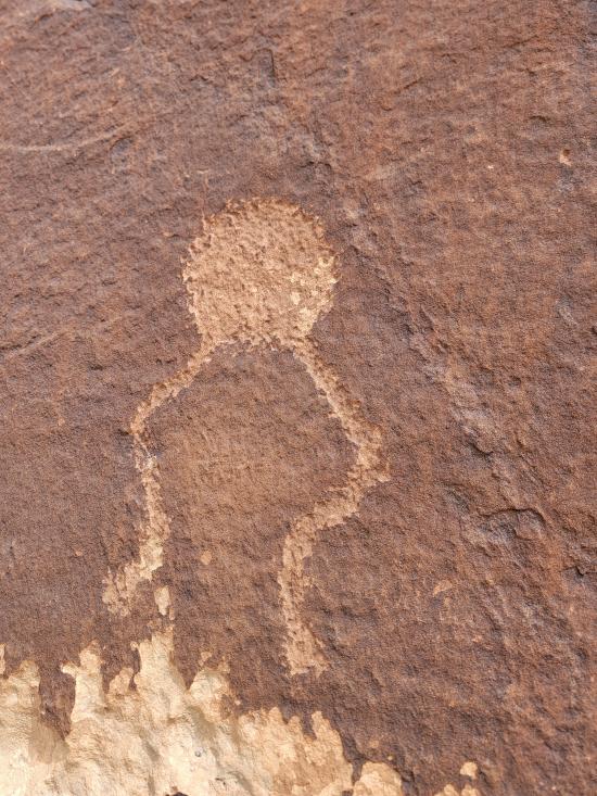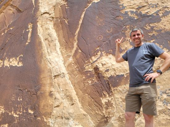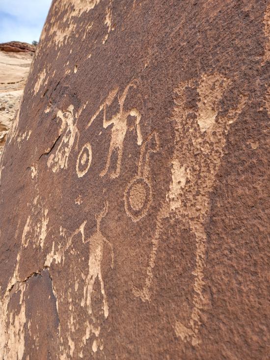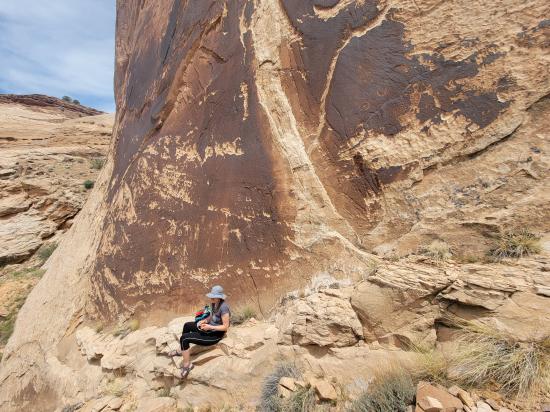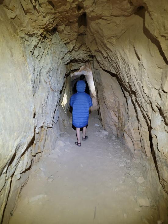 We had a slow morning then packed our daypacks and drove to Fuller Bottom. From the trailhead, we hiked about two miles to the Sorrel Mule Mine. We stopped to look at petroglyphs along the way. The mine was a lot of fun, and we explored the full length of the passages. We thought the extremely smooth walls were cool, and we enjoyed realizing that some dark patches on the ground is the remains of the wood railroad tracks.