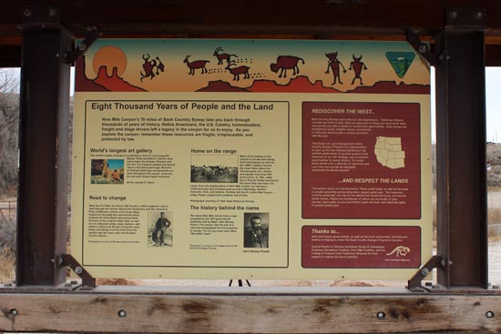 Eight Thousand Years of People and the Land Nine Mile Canyon's 78 miles of Back County Byway take you back through thousands of years of history. Native Americans, the U.S. Cavalry, homesteaders, freight and stage drivers left a legacy in the canyon for us to enjoy. As you explore the canyon, remember these resources are fragile, irreplaceable, and protected by law. World's longest art gallery Thh world's largest collection of prehistoric rock art runs along the Byway. Three prehistoric cultures were active here: the Archaic, Fremont and the Ute. The Fremont painted and etched about a thousand years ago. Remains of Fremont dwellings and granaries are seen throughout the canyon. Look but do not touch these fragile resources. Road to change After the Civil War, the Army's 9th Cavalry, a black regiment, built a road through the canyon linking Fort Duchesne with the railroad in Price. Cattlemen, miners, and a busy stage freight line followed this commercial artery between the Uinta Basin and central Utah. Portions of the original stage road, as well as iron telegraph poles, stage stations, and settler's cabins are all seen along the route today, reminding us of the time when the canyon was the main road, not the Back Country Byway. Home on the range Much of the bottom of the canyon is private land dating from homesteads as early as the 1880s. Settlers farmed the same fields where the Fremond grew corn, beans and squash more than 500 years earlier. In 1902, cattle baron Preston Nutter purchased the ranch that now bears his name. From the headquarters in Nine Mile Canyon, he oversaw a cattle business that included grazing land in Wyoming, western Colorado, Utah, and Arizona. Families still ranch in Nine Mile Canyon today. Please respect their property and privacy. The history behind the name The name Nine Mile comes from a map prepared by the 1872 government expedition led by Major John Wesley Powell. The canyon was the site of a nine-mile triangulation for the purposes of survey. The survey maps were titled "Nine-Mile Creek" Rediscover the West Back County Byways open doors to new experiences. Following a Byway can take you back in time, allow you glimpses of things you have never seen, and provide you with a variety of recreational opportunities. Each Byway has exceptional values, whether scenic, recreational, or historical, and provides a unique encounter with the land. The Bureau of Land Management's Back Country Byways Program is a national effort to open up the less traveled corridors of the western public lands, to provide access to the treasures of our rich heritage, and to enhance opportunities for scenic driving. The public lands exhibit such a diversity of resources and uses - they can provide an enjoyable experience for almost anyone!