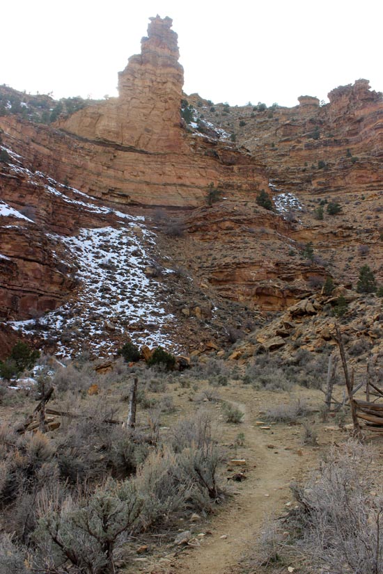 And here's where I made the wrong turn. Instead of turning right and following the east wall to the southeast, I followed the trail to the left and went up canyon. Now don't get me wrong; up canyon is very scenic and a good little hike, but there isn't any rock art up canyon that I could find.