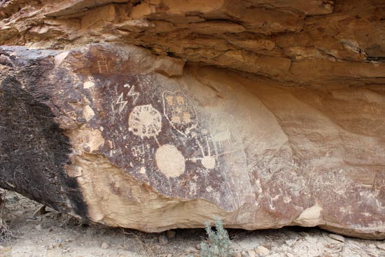 Around the corner from the Great Hunt Panel are several other interesting petroglyphs including this one of "The Alien".