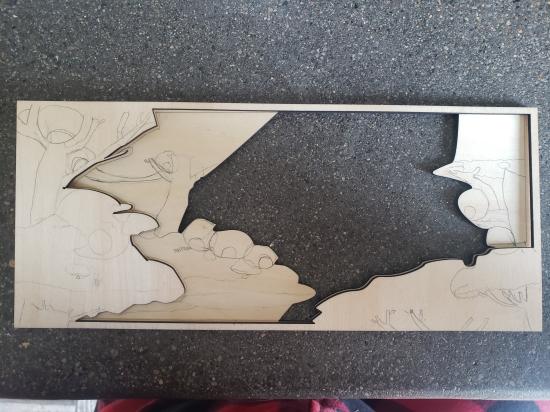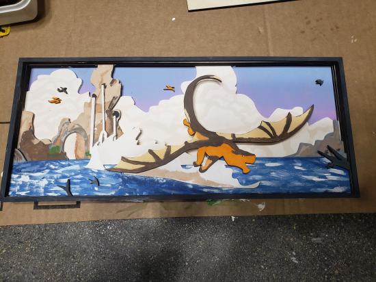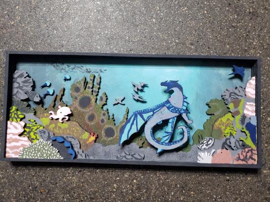 These handcrafted shadowbox artworks bring scenes from the Wings of Fire book series to life through layered, laser-cut wood elements. Each component of the scene—terrain, foliage, creatures, and sky—was precisely cut from wood and individually hand-painted before being assembled into dimensional compositions. The combination of laser cutting and hand painting allows for both precision and artistic expression, while the shadowbox format frames the piece like a window into a fantasy realm. Designed for fans of Wings of Fire and lovers of narrative art, these pieces celebrate storytelling, craftsmanship, and the magic of seeing a beloved fictional world rendered in three dimensions.