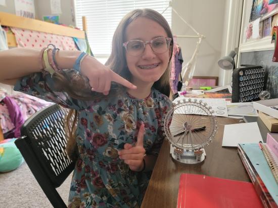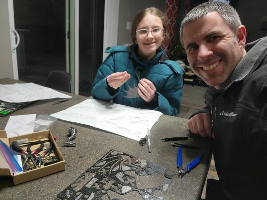 Savannah made a steel model kit of the London Eye. I made one of a butterfly. Savannah and I are working on a model of a dragon.