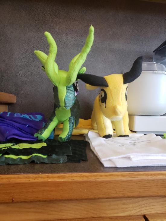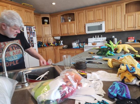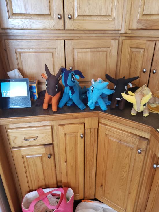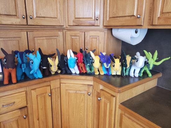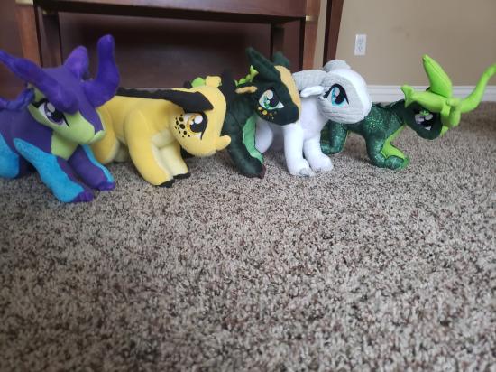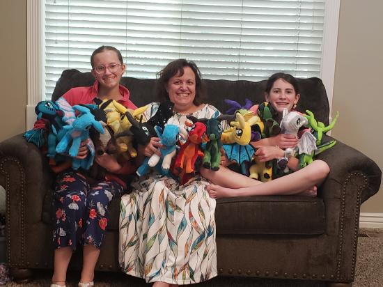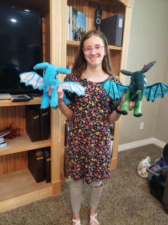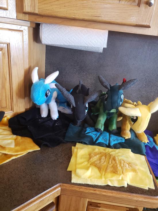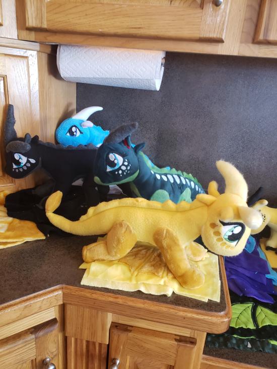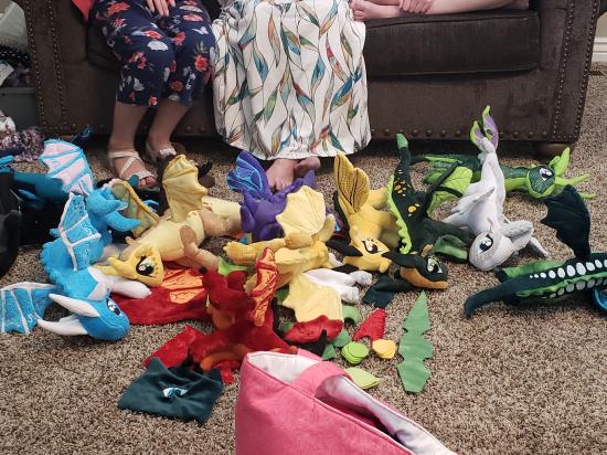 Mamaw, Savannah, Madilyn, and Becca sewed a ton of stuffed dragons from Wings of Fire.