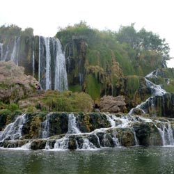 Most of our group chose to stay at the top of the falls. Zac, Jaren, and I elected to scramble down the waterfall to get a view from the bottom. When we got down a ways and turned back to the rest of our group, we could see that the trail they were standing on was located on the edge of a large overhang. Scary. Around the corner were several more waterfalls not visible from the main trail. I still had my swimming suit on from our rafting adventure, so I waded across the river to get some more pictures. The water was up to my armpits. There you have it. Fall Creek Falls.
