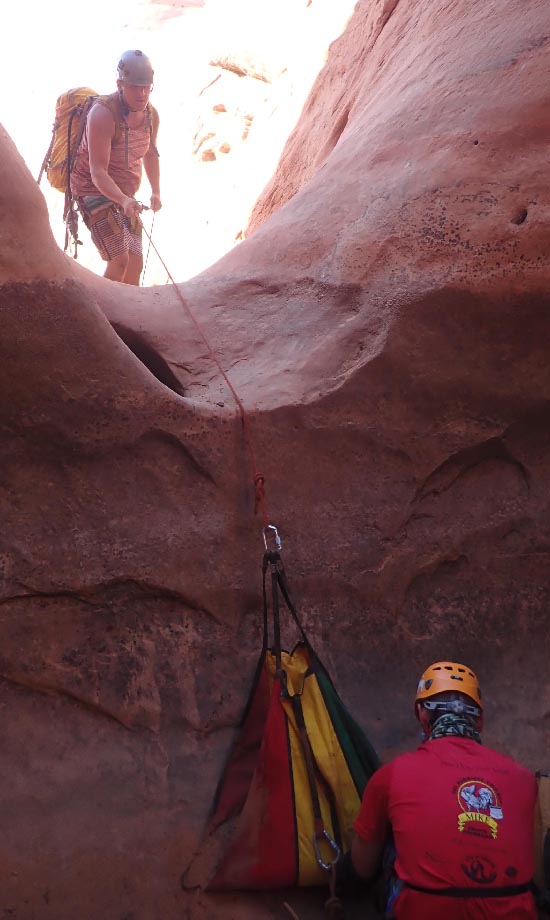The sand trap is retrievable, meaning you can retrieve your gear from the bottom of the rappel after rappelling from it. The sand trap can also be less damaging to the canyon than bolts or other fixed anchors.