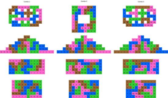 We ended up building combo 3 because the pyramid shape can be split into two triangles. Combo 2 is also cool because you could put a TV or something in the middle hole. Several good resources for Pentomino solutions are Gerard's Universal Polyomino Solver that allows you to find solutions for custom shapes, and http://www.asahi-net.or.jp/~rh5k-isn/Puzzle/Pentominoes/ that has solutions for all 2d and 3d regular Pentomino shapes. You can also contact me for help using my spreadsheet.