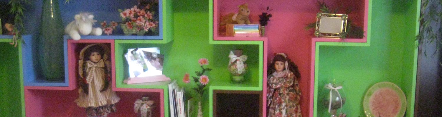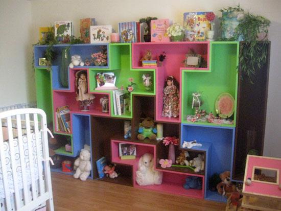 They can even go around corners and windows. These shelves are very bright and colorful, giving a modern splash to any kids room.