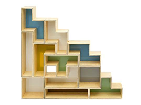 However, there are still lots of patterns we can make with the pieces. These Pentomino shelves can be repositioned and stacked in hundreds of different combinations, so they are very modular shelves.