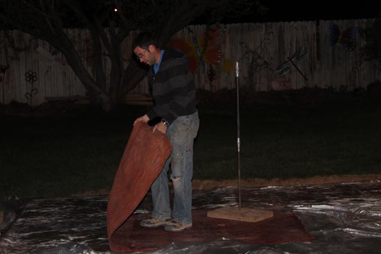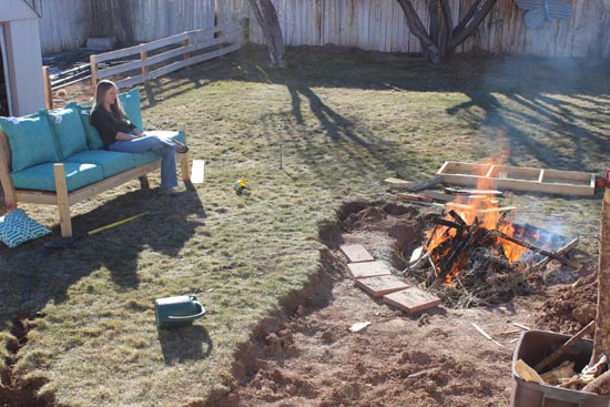 Construction of the herb spiral began June 1st. We started out by spray painting where everything would go.