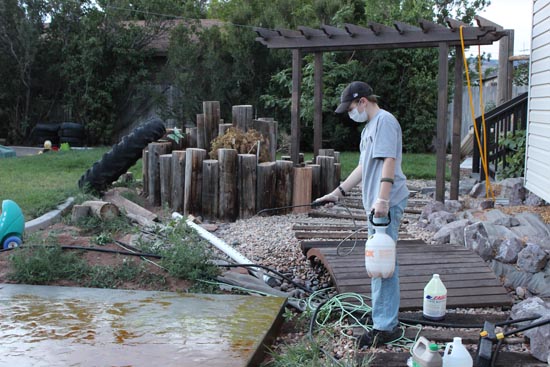 If we had the money for it, we would have planted plants right away and run a drip system before we spread the wood chips. However, plants will have to wait for another day.