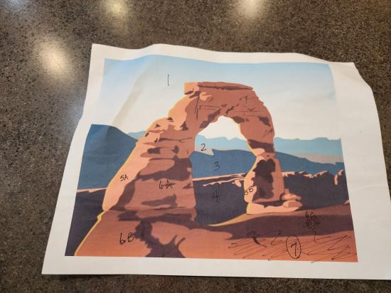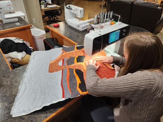 Tara and I made this landscape quilt of Delicate Arch with lots of help from my mom. It uses a technique of sewing each layer on top of the last one and quilting as you go.