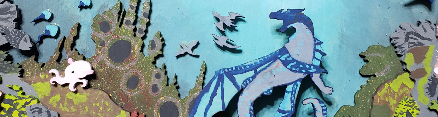 These handcrafted shadowbox artworks bring scenes from the Wings of Fire book series to life through layered, laser-cut wood elements. Each component of the scene—terrain, foliage, creatures, and sky—was precisely cut from wood and individually hand-painted before being assembled into dimensional compositions. The combination of laser cutting and hand painting allows for both precision and artistic expression, while the shadowbox format frames the piece like a window into a fantasy realm. Designed for fans of Wings of Fire and lovers of narrative art, these pieces celebrate storytelling, craftsmanship, and the magic of seeing a beloved fictional world rendered in three dimensions.