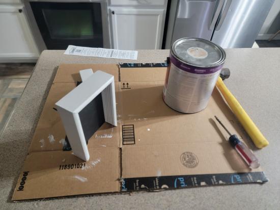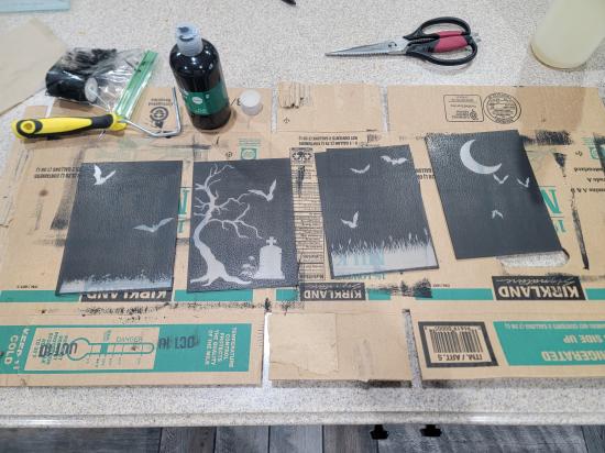 This handcrafted lightbox features a painted white wood frame housing a black backboard and four individually etched glass panels that slide neatly into place. Each glass layer contains a different element of the overall image, and when stacked together, they create a striking three-dimensional scene with depth, separation, and visual movement. An integrated LED light strip runs around the perimeter of the frame, softly illuminating the etched glass from behind. The light enhances the etched details and creates subtle shadows between layers, bringing the scene to life—especially in low light. This piece includes multiple interchangeable designs. The winter scene shown depicts a snowman, deer, and trees set within a quiet forest landscape. Additional etched scenes include butterflies drifting through tall grass, a city skyline illuminated by fireworks, and a Halloween graveyard with flying bats. Each scene transforms the lightbox into a unique seasonal or thematic display. Both decorative and technical in its construction, this layered glass artwork blends woodworking, glass etching, and lighting into a single immersive piece. Designed to be displayed on a shelf or wall, it offers a dynamic, glowing window into a carefully crafted miniature world.