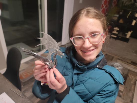 Savannah made a steel model kit of the London Eye. I made one of a butterfly. Savannah and I are working on a model of a dragon.