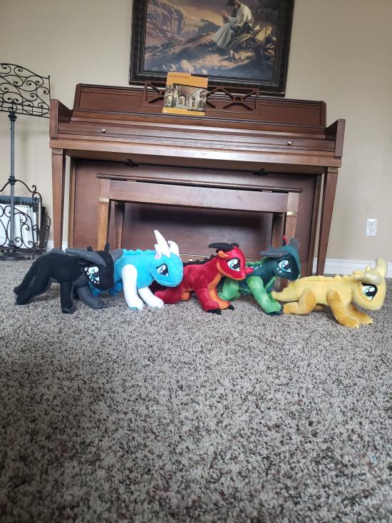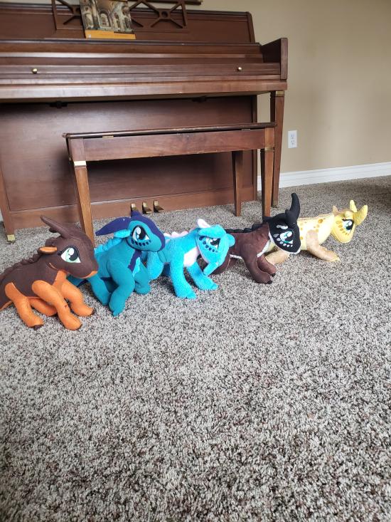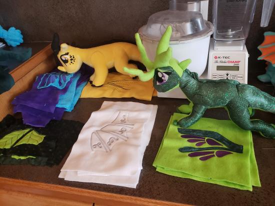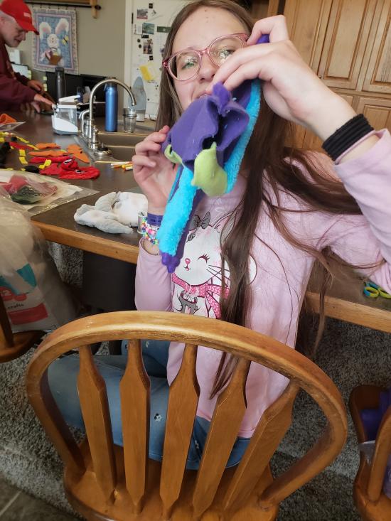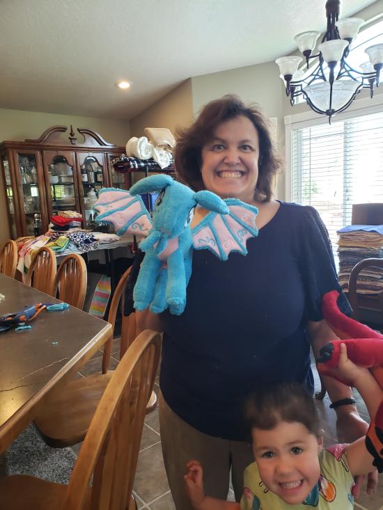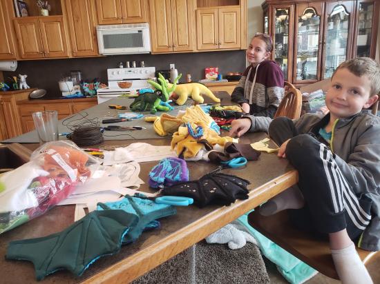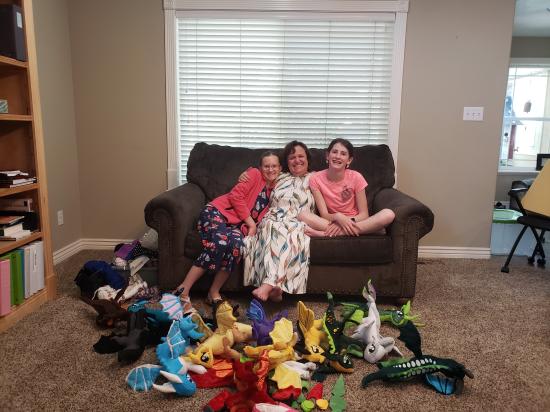 Mamaw, Savannah, Madilyn, and Becca sewed a ton of stuffed dragons from Wings of Fire.